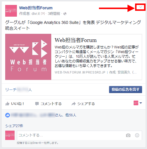 さて、このシェアを削除して再投稿すればいいのですが、すでに「いいね!」が付いているときは削除しづらいですよね。実はこれ、カンタンに直せます。