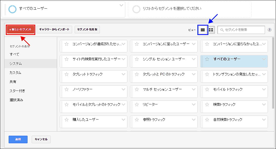 標準に用意されているセグメントには今回紹介するセグメントは存在しないので、新しいセグメントを作成していく必要がある。