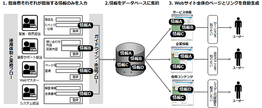 たとえば、「商品情報や価格、その他のコンテンツをデータベースで一元管理し、お客さまのニーズに合わせてリアルタイムかつ動的にページを生成していく仕組みを作ることでサービス向上につなげる」といったようにだ。