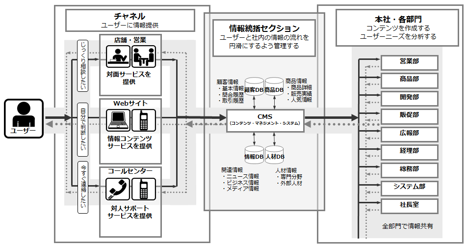 これによって、お客さまは自身の問題をより早く、より正確に解決できる。満足体験を現実のものとするにはなくてはならないものである。CMSツールの導入が目的ではなく、この考え方こそがCMSなのだ。