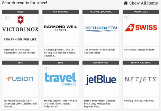 Brandtaleもいいツールだ。量よりも質を重視した分析に強く、大手パブリッシャーのデジタルコンテンツや広告キャンペーンの情報が得られる。旅行の例で言えば、旅行のセクションを調べることで、キャンペーンを展開しているブランドを見つけることができる。
