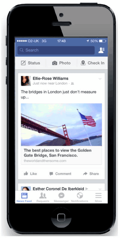上手では「サンフランシスコのゴールデンゲートブリッジを見るのに最高の場所」というコンテンツへのリンクが示されている。モバイルデバイス上でこのようなリンクをクリックしたら、当然アクセスするコンテンツは正常に表示されるものと期待される。それなのにモバイルで正しく表示されなかったら、コンテンツを楽しんだり関わったりする気にはならないだろう。ましてや、コンテンツをシェアしたり、リンクを張ってくれたりといったことはするはずもない。