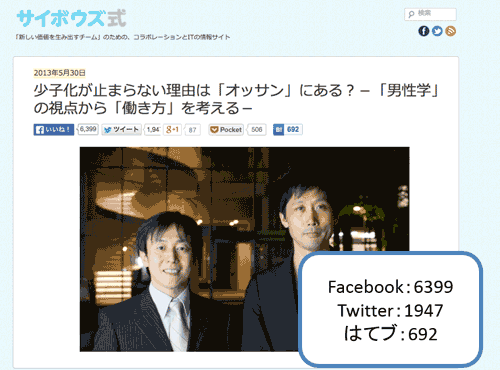 サイボウズ式のブレイクスルーになった記事です。少子化という社会課題に対して「男性学」の視点から、解決策を考えてみました。「オッサンにある?」というタイトルは少々刺激的かもしれませんが、こういった問題提起のタイトルを付けることで、多くの読者の方に読んでもらえたと実感します。