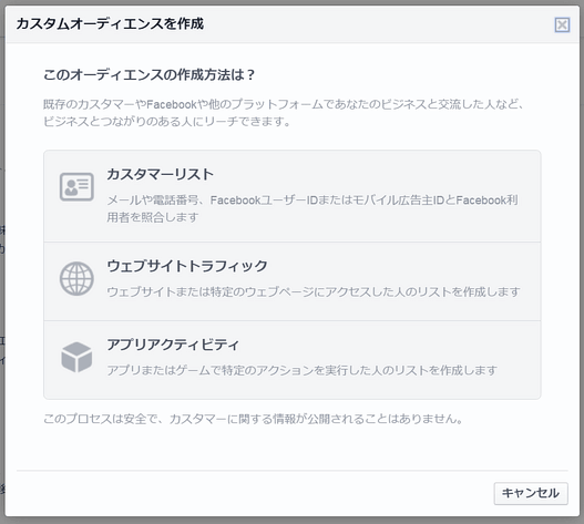 また、Facebookのカスタムオーディエンス作成画面にメールアドレスをアップロードすれば、ターゲット設定をさらに1歩進めることができる。