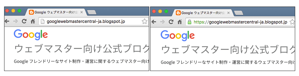 たとえば、Bloggerで運用されている日本のウェブマスター向け公式ブログは、HTTP と HTTPS のどちらでもアクセスできる状態になっている。