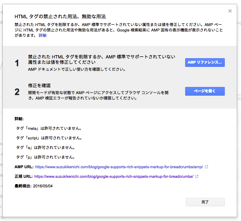 AMPレポートにエラーが出ているページは、有効なAMPページとしてグーグルに認識されない。簡単な修正で直ることもあるので、エラーレポートを有効に使いたい。