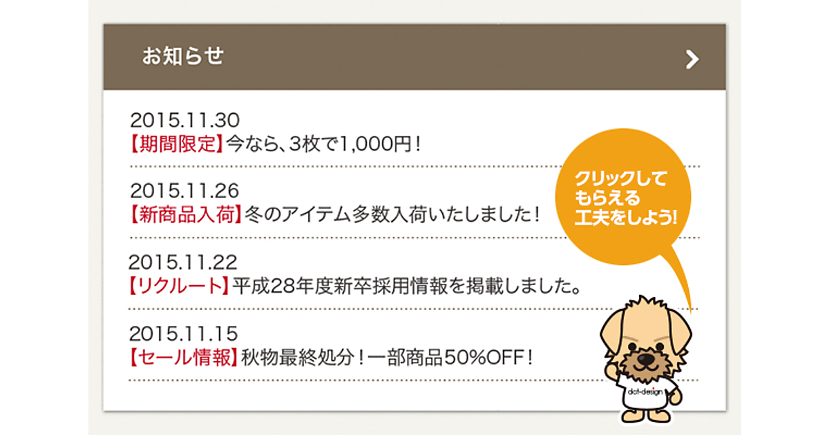 トップページに掲載することが多い「トピックス」。