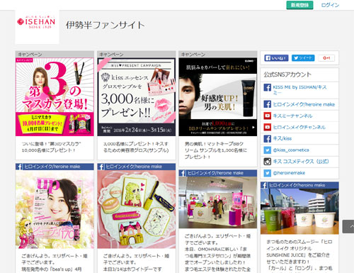 そこで、1年ほど前にファンサイト(伊勢半ファンサイト)を始めました。ここは伊勢半のブランドのソーシャルメディアの投稿を全部連携して見られるサイトで、ソーシャルメディアアカウントでログインできます。ファンサイトを見てもらうと、「このブランドも伊勢半だったんだ!」と、他のブランドを知っていただくきっかけになっています。キャンペーンなどのアンケートを定点観測してみると、以前は1つのブランドしか購入していなかった方が、複数のブランドを購入するようになるなどの効果も出てきています。