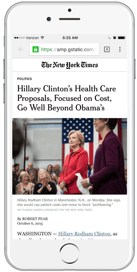 以下に挙げるのは、AMPページが「iPhone 6」でレンダリングされた場合にどう見えるかを示す例だ。