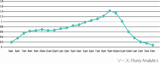 プッシュ通知を送ると、お客さまのモバイル端末のスクリーンが光り、端末が振動し、お客さまの注意を引き付けます。適切なタイミングであれば効果的ですが、夜中に届くのは不快です。プッシュ通知はお客さまが活動している時間帯にのみ送るようにしなくてはなりません。FlurryAnalyticsによるとアメリカ人は18時から22時の間にもっともアクティブに活動しています。ユーザーベースが複数のタイムゾーンにまたがっていれば、タイムゾーンの情報も活用すべきです。