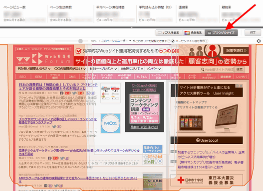 ちなみに、グーグルが「Google Browser Size」というサービスを2010年頃に提供していましたし、Googleアナリティクスの「ページ解析」にはそのデータを使った「ブラウザのサイズ」という機能がありました。