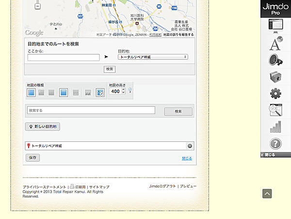 みんビズは、Googleマップの埋め込みに対応しているのはもちろん、ルート表示機能がかんたんにつけられます。Googleマップを本格的に使いこなすにはいろいろと知識を要しますが、ルート表示機能をつけるだけでも、利用者が現在地から目的地までのルートを確認でき、便利です。