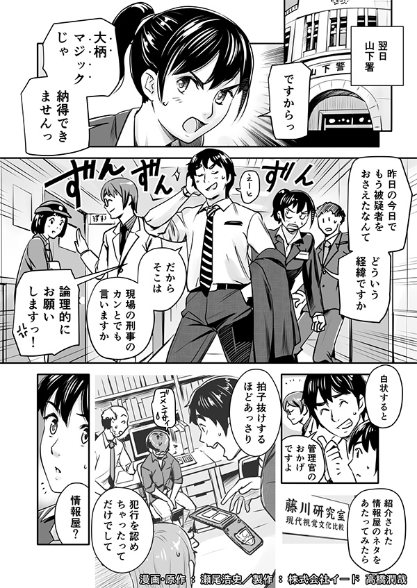 偽ネットショップの相談を受けた刑事 大柄京平が、管理官に紹介された専門家は、なぜか女子高生。しかし彼女は、コンピュータを駆使して、あっという間に犯人を突き止めて言った。