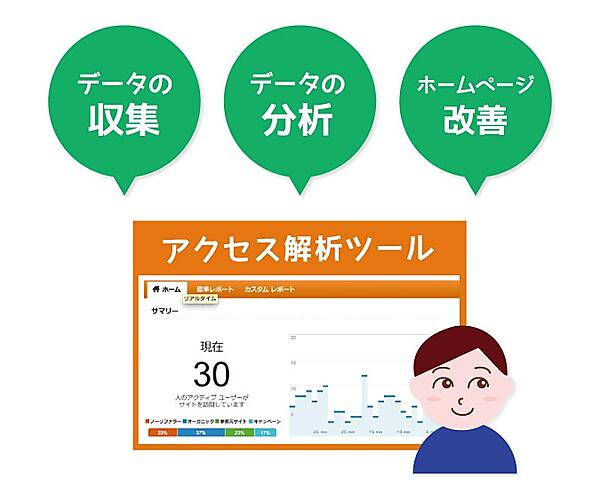 ホームページでは、アクセス解析ツールでデータを収集、分析、それをもとに改善していくことを「アクセス解析」と呼んでいます。