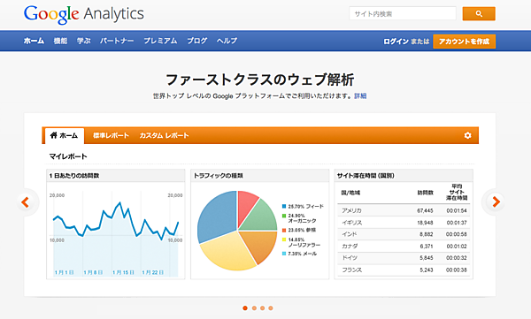 こちらは、Googleが無料で提供しているアクセス解析ツール「Google アナリティクス」です。誰でも無料で使うことができます。