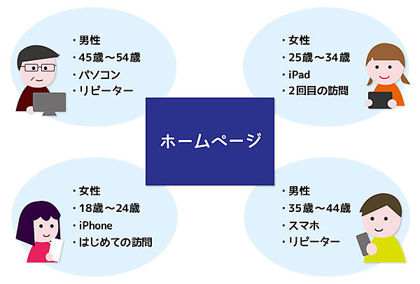 「ユーザー」とは、ホームページに訪問するお客さまのことです。