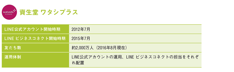 「資生堂 ワタシプラス」LINEアカウントの友だちは2,000万人を超え、その中にはLINEアカウントの友だちになって以降ワタシプラスに関心を持ち、新たに会員になってくれるユーザーも多いとのことです。