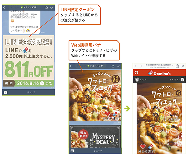 LINE を「当たり前の場」として使う人にとっては、企業と友だちになる、ピザを注文する、というアクションがつながりやすいのかもしれません。