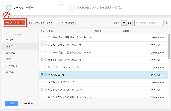 2. 「新しいセグメント」をクリック