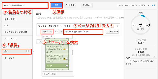 「すべてのセッション」のセグメントは削除し、「おいしく召しあがるには」のセグメントだけにします。