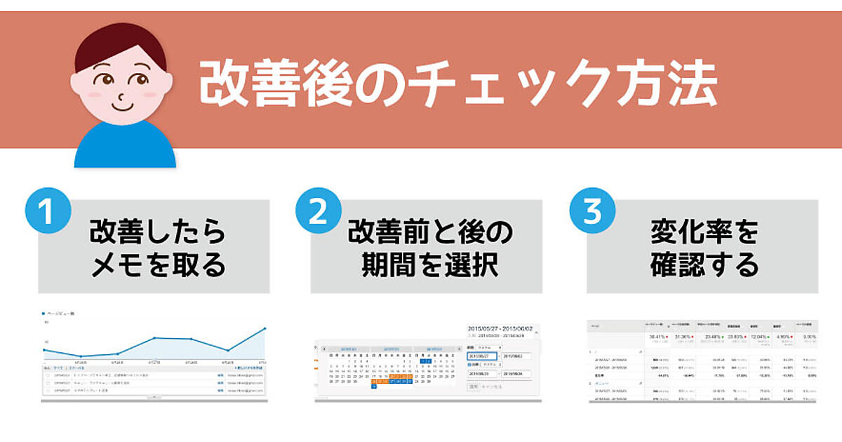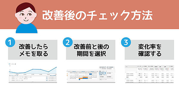 改善の結果がどうだったか、Google アナリティクスを使って必ず確認するようにしましょう。