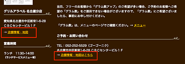 該当するページ「お店の情報」が表示されました。(お店の情報は、「店舗情報」のページのことです。)