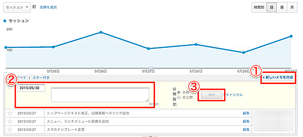 こうすることで、改善をした日から1週間(2015/05/27~2015/06/03)と、改善する前の1週間(2015/5/19~2015/05/26)の期間を比較することができます。