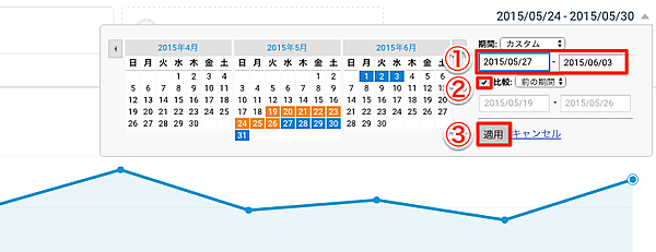 - 変更をした日から、1週間を選択します(例:改善をした 2015/05/27~2015/06/03 まで)
