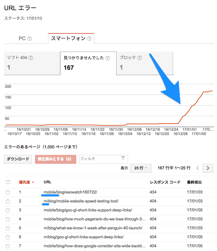404エラーが急増した原因は、存在しないモバイル向けページのURLにGooglebotがクロールしてきたからだった!