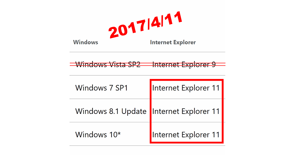 4月11日から、IE 9もIE 10もサイトでサポートしなくてよくなります。