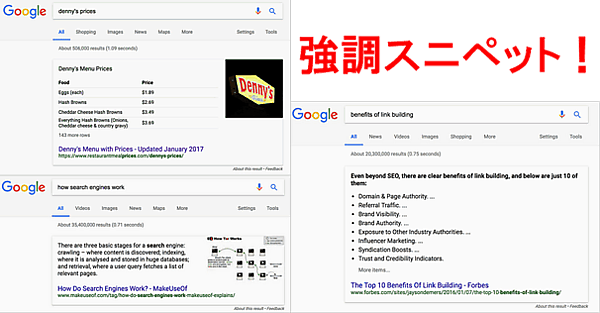 思うに、グーグルは単に表示に適した表が見つからないために、段落など、もっと簡単な形式をデフォルトで表示しているケースが多くあるのだろう。
