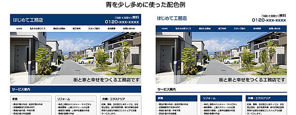 これらはきっちりと分かれているわけでもなく、どちらも行う会社もあるのですが、ホームページを見にくる人はまったく異なります。今回は主に一般的な家を作っている会社の色を中心に考えていきます。ビルなどの施工会社は、第6回「製造業のホームページの配色」※「はじめてWEB」は