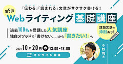 連載筆者の中野氏に学ぶWebライティング講座が2020年10月14日(水)に開催されます。