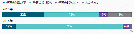 日本では、どのでデジタル広告よりもリターゲティングに広告予算を費やすマーケターが多く、2016年は約4人に1人が予算の25% - 50%をリターゲティング広告に使用しており、前年の約4倍の伸びを見せています。さらにマーケターの70%が2017年はリターゲティング広告の予算を増加予定と回答しており、日本では先述のプログラマティック広告及びリターゲティング広告に予算配分が集中する調査結果となりました。