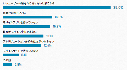 そして、実際にモバイルでキャンペーンの実施経験があるマーケターの23%が「まだいいユーザー体験を作り出せていない」と回答しており、軌道に乗っているかのように見えるモバイルリターゲティングですが、まだまだ導入への意欲に関しては、課題が残ることも同時に浮き彫りとなりました。