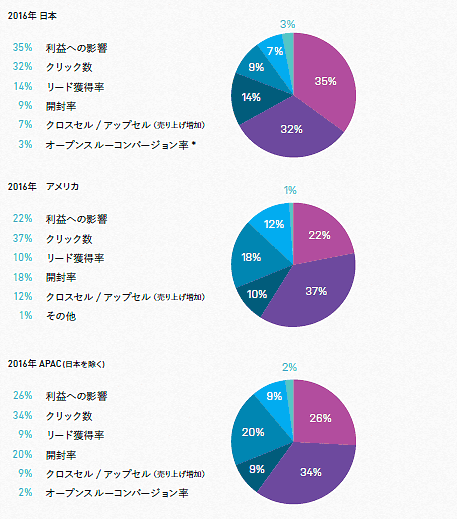 顧客満足度やリテンション施策の前にAPACは、消費者に企業や商品・製品を理解してもらうキャンペーンがメールを通じてできているということが垣間見れる結果となりました。