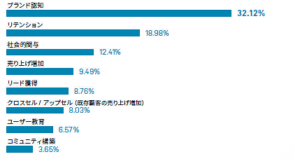 日本の場合、「ブランド認知」がすでに取れていても、認知したユーザーをリードに変えて行くプロセス「リード獲得」、「リード育成」もブランドを知ってもらうステップとして、「ブランド認知」と回答しているのではないでしょうか。