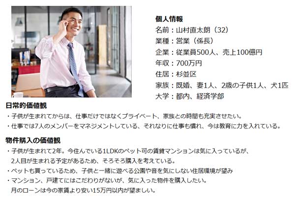 メッセージをイメージするときは、仮想のユーザー像「ペルソナ」を作成することが有効です。ペルソナがあることで、画一的なターゲット像ではなく「人となり」を具体的にイメージできるようになり、ターゲットに対して商品のどこを訴求すべきかがより具体的に見えてきます。