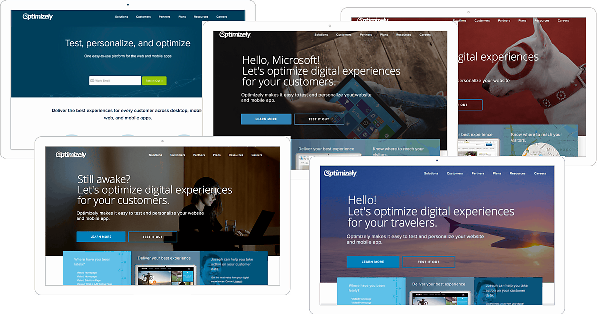 Optimizely.comがトップページのデザインを刷新したとき、私はマーケティングチームの一員だった。私たちは、標準的な水準では最良ともいえる単一バージョンのトップページから、訪問者ごとにパーソナライズした26バージョンのトップページへと変更した。