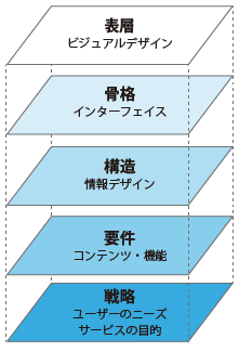 有名な「UXの5階層モデル※1」でいうと、今までは表層(ビジュアルデザイン)とその次の骨格(ナビゲーションデザイン・インターフェースデザイン・情報デザイン)くらいまでしかやっていなかったです。しかし、現在は「デザインとは、本来構造以下まで掘り下げるべきものだ」という考え方になってきました。