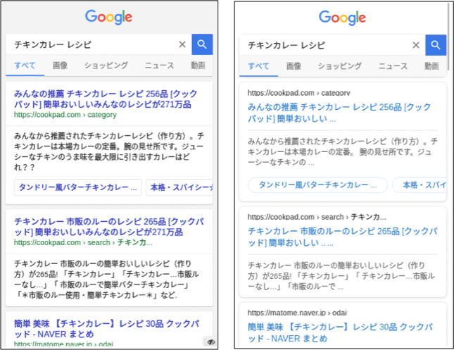 Googleの検索結果のUIが変わった。プライベートモードで比較。