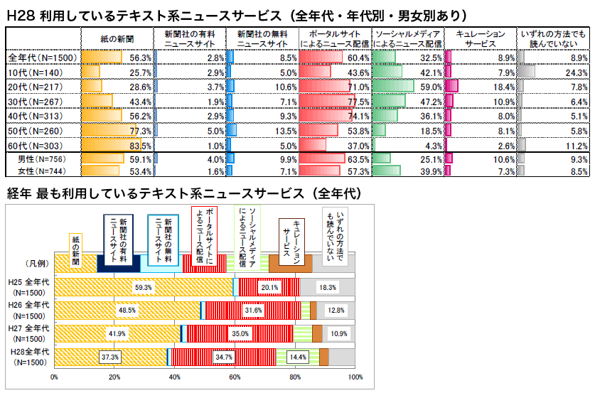 - ニュースを得る手段(テキスト)が初めてポータルサイトが新聞を上回る