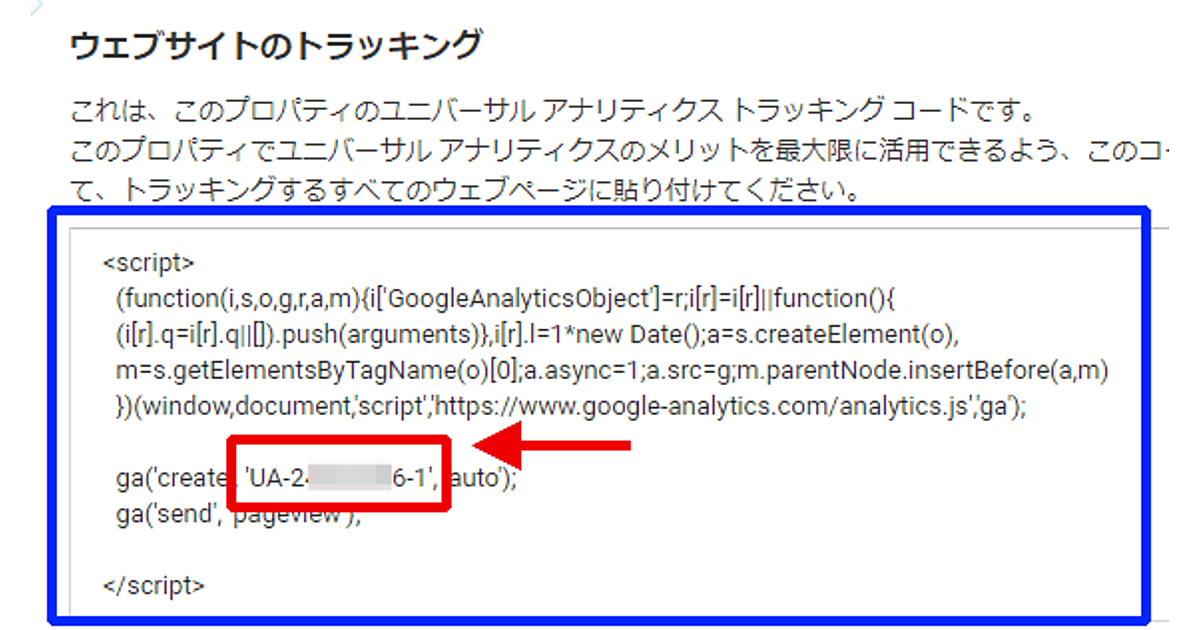 計測対象となるサイトを新規登録するためにプロパティを作成すると、そのサイトを計測するための固有の番号(トラッキングID、図1赤枠部分)が付与され、トラッキングコードが発行される(図1青枠部分)。サイトを新規登録する手順については連載の第2回で解説している。