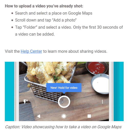 制約があったとしても、グーグルマップ経由の集客アップに役立ちそうな、おもしろい機能だ。自分のお店を訪れたユーザーが動画を投稿してくれるようなプロモーションを考えてみるといい。