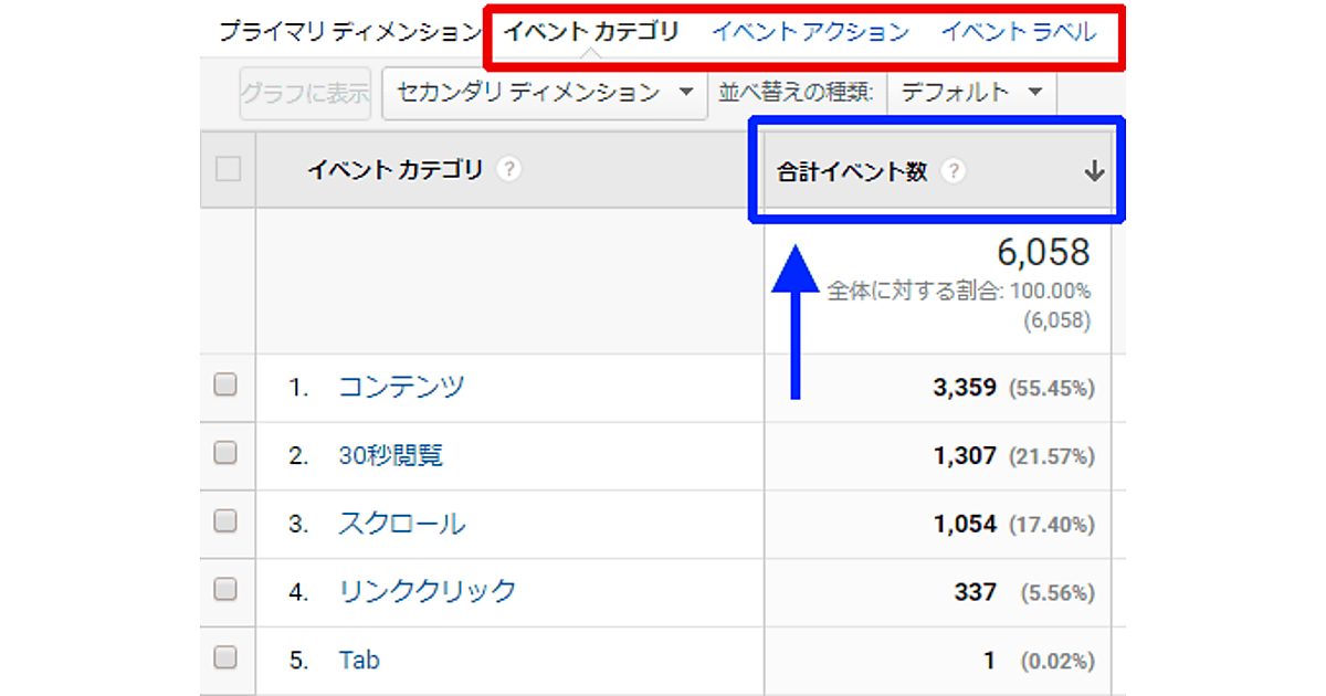 設定方法は後で説明するとして、まずどのようにイベントトラッキングのデータを分析できるのかを見ておこう。