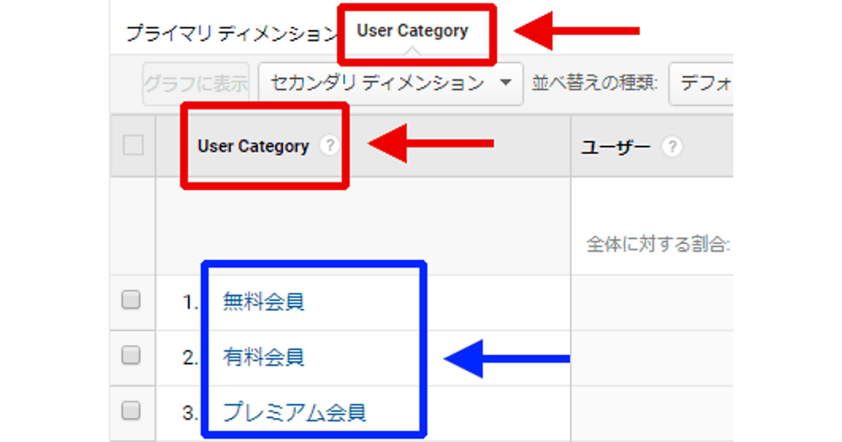 このようにして、新しく作成したカスタムディメンション「User Category」を分析に活用することができるようになる。