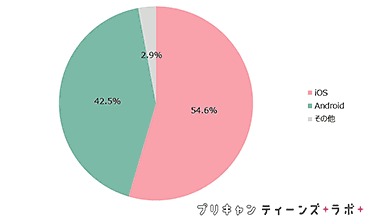 利用しているスマホのOSに関しては、「iOS(54.6%)」が「Android(42.5%)」を上回った。