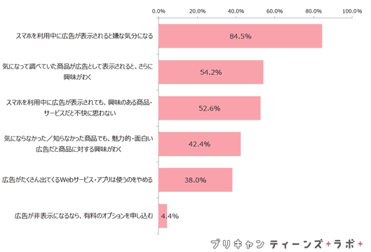 「プリキャンティーンズラボ」の「10代女子のスマホ広告に関する調査」