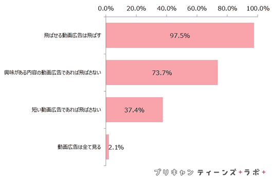 一方「興味がある内容の動画広告であれば飛ばさない(73.7%)」という結果になった。