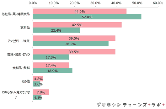 調べた・購入したものは「化粧品・薬・健康食品」がトップ